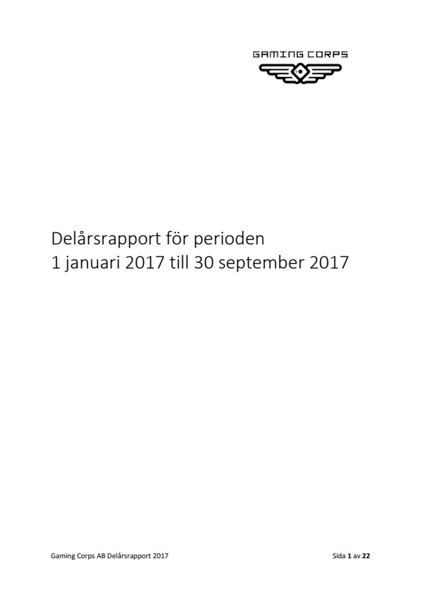Med “Bolaget” eller “Gaming Corps” avses Gaming Corps AB med org nr 556964-2969. Bolaget är publikt (publ). Uppgifterna inom parentes avser föregående år. Visual Dreams AB är ett helägt dotterbolag till Gaming Corps AB som konsoliderades den 1 januari 2016. Red Fly Studio Inc är ett helägt dotterbolag till Gaming Corps AB som konsoliderades den 1 januari 2017. Salsa Games Ltd är ett helägt dotterbolag till Gaming Corps AB och förväntas konsolideras per den 1 januari 2018.