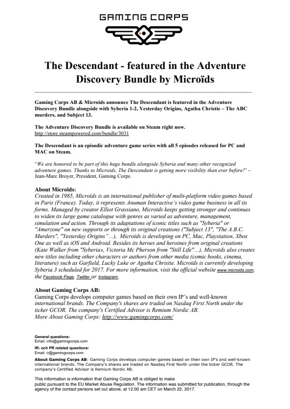 About Gaming Corps AB: